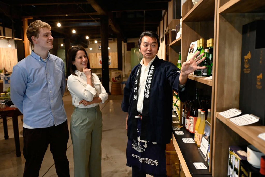 【竹プラン】では【梅プラン】徳島食材満載の酒の肴「阿波肴箱」を肴に【梅プラン】の「酒の寺子屋」を実施し、その後、普段、一般のお客様をお入れしていない酒造現場へご案内し、実際の作業風景を見学。